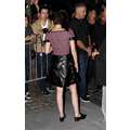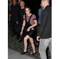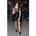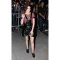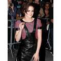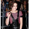 Kristen Stewart wears leather to promote upcoming film Camp X-Ray in New York.