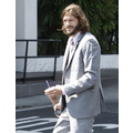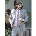 Ashton Kutcher arrives to Two and a Half Men set looking dapper in an all-grey suit.