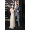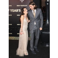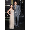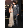 Ashton Kutcher and Lea Michele snuggle up on the red carpet at the prmiere of New Year's Eve in Hollywood.