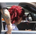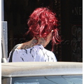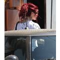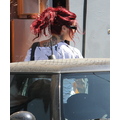 Kat Von D tried to hide under a nasty wig for the third day in a row as she left her LA tattoo shop. Lose the red mop, honey!