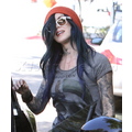 Kat Von D was all smiles when we snapped her heading to work on Sunday afternoon.