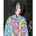 Lady Gaga wore a colorful getup when she was snapped leaving her London hotel on Monday.