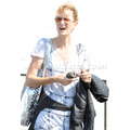 Laura Dern leaving Soul Cycle in Los Angeles making funny faces.