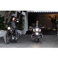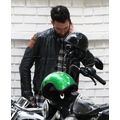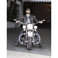 A scruffy Adam Levine leaves Chateau Marmont on his Harley