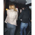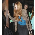 Lindsay shows off her sexy red hair while at dinner with friends.