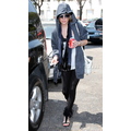 Photogs noted that Linds made every effort to cover up her hair, and this isn't the first time in the past few days...is there something funky going on under that hood?