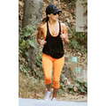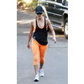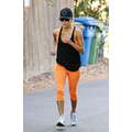 Eva Longoria worked up a sweat in a pair of very bright spandex crops on Tuesday.