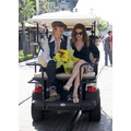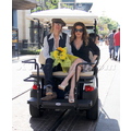 Lisa Marie Presley gets escorted to her Extra interview by golf cart!
