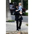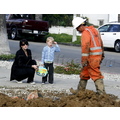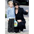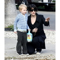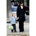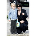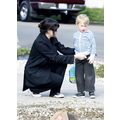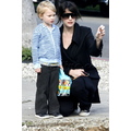 Liv Tyler and and her son Milo take a break and observe a construction site...