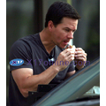 Mark Wahlberg seems to have been caught off guard when our photogs caught him having lunch on the run!