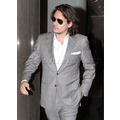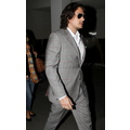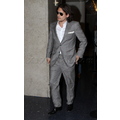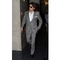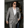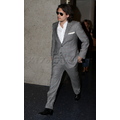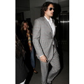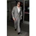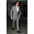 The sexy singer rocked a light grey suit at the airport on Wednesday evening.
