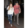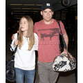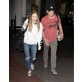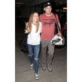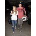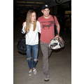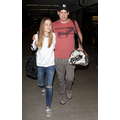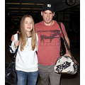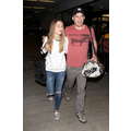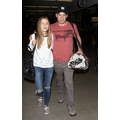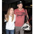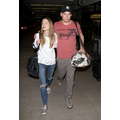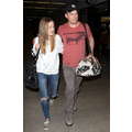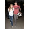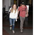 The actor walks through the airport with his new girlfriend.