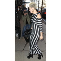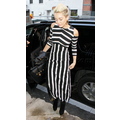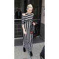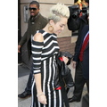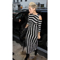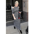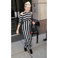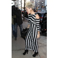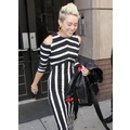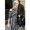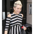 Miley Cyrus steps out in New York City on Thursday in a sexy striped dress.