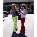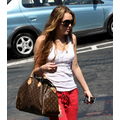 Miley and her mom, in matching outfits and bags look more like sisters than mother and daughter!