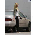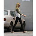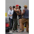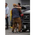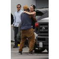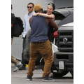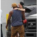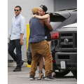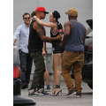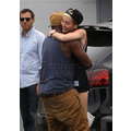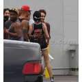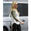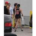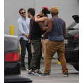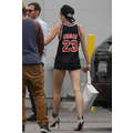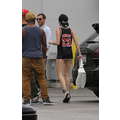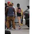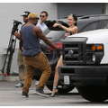 Miley Cyrus wears booty shorts to the studio.