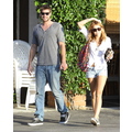 Miley Cyrus and boyfriend Liams Hemsworth were kind enough to pose for a few pictures with fans after lunch in Studio City today.