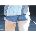 Miley Cyrus nearly flashed her buns in a pair of short shorts on Wednesday at the studio.