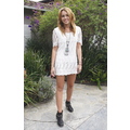 Miley Cyrus dons a super-short mini dress for a party with friends in Brentwood.