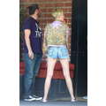 Miley Cyrus smoked a cigarette outside of the recording studio on Monday, and not only did she flash her booty while bending over to put it out, but she flipped the bird!