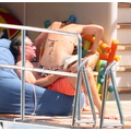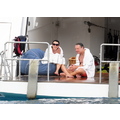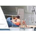 The Jimmy Choo founder takes a break with her new boyfriend in the French West Indies.