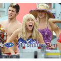 Miley Cyrus breaks out a blonde wig for the second day of her video shoot!