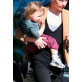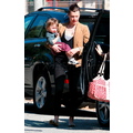 Milla looks like a natural mother carrying Ever out in Los Angeles.