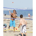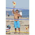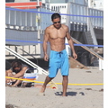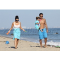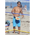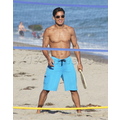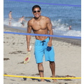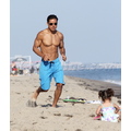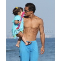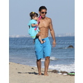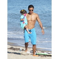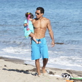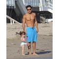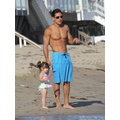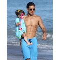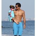 Mario carries his daughter and shows off his flawless 'bod at the same time!