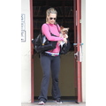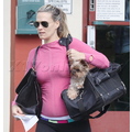 Molly Sims picks up her dog from the vet and struggles to juggle her bags!