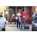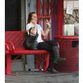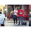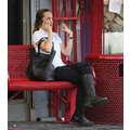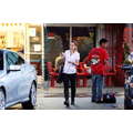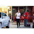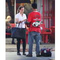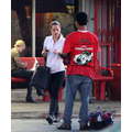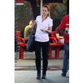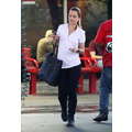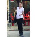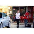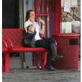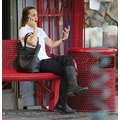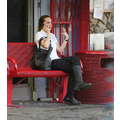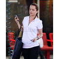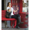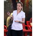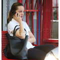 Mena Suvari chats on her cell phone while waiting at the car wash.