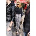 Nicole Richie at The Grove on Extra wearing an interesting top with cut outs on the back and print pants.