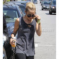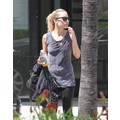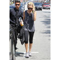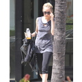 The starlet looked a bit flushed after her workout at Tracy Anderson's gym in Studio City on Thursday.