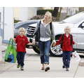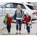 Naomi Watts shared a laugh with her two boys after one of them accidentally whacked her in the face with a reusable bag.