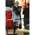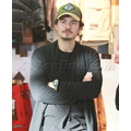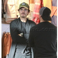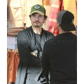 Orlando Bloom shops for snowboarding gear with a patchy beard then leaves in his Audi.