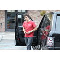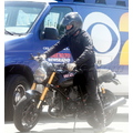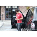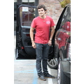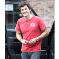 Orlando Bloom flashes his sexy smile after lunching in Brentwood.