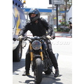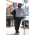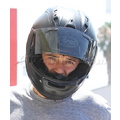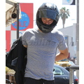 Orlando Bloom leaves M Cafe on his motorcycle.