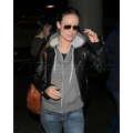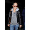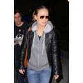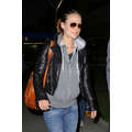 The actress kept her baby bump hidden under a sweatshirt at the airport.