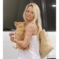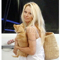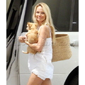 Pamela Anderson toted her darling pup Brigitte Bardot around Beverly Hills yesterday afternoon.