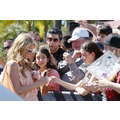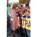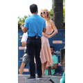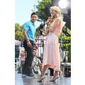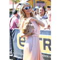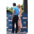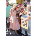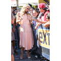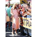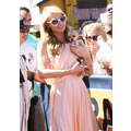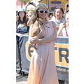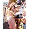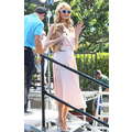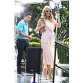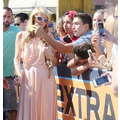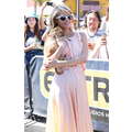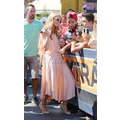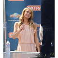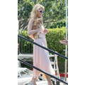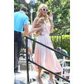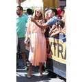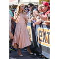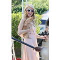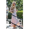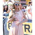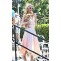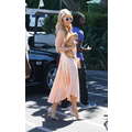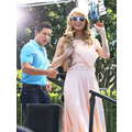 Paris Hilton looked gorgeous in a peach frock when she shot an interview with Extra's Mario Lopez on Tuesday at the Grove in Los Angeles.