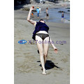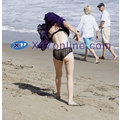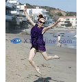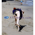 Ms. Price shows off her moves and her underwear on the beach in Malibu!