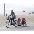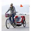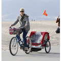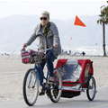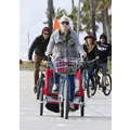 The singer went biking on the beach.
