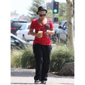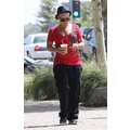 Pink goes on a Malibu Starbucks run in a black hat and sweatpants.