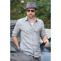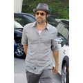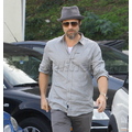 Earlier today we snapped Brad Pitt driving around, but the hunky actor was behind the wheel of a brand new Camaro instead of one of his many bikes. Maybe Angie made him trade in 2 wheels for 4?