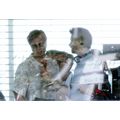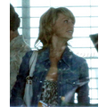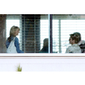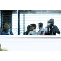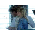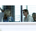 Brad Putt was spotted sharing a laugh with co-star Kathryn Morris on the set of Moneyball in LA.