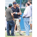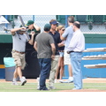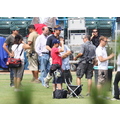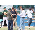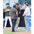 Here's even more shots of a freshly shaven Brad Pitt on the set of Moneyball in LA.