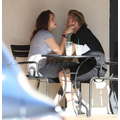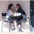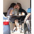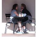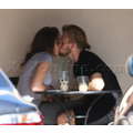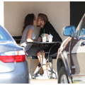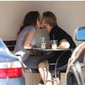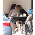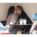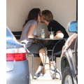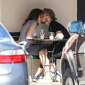 The teenage couple exchanged sweet smooches over coffee.