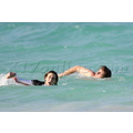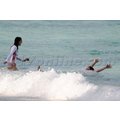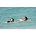 Paul McCartney and Nancy Shevell goof off in the ocean.