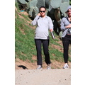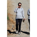 Natalie Portman covers up her bump with a sweatshirt.