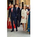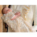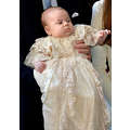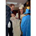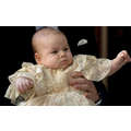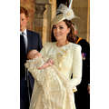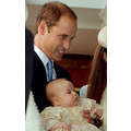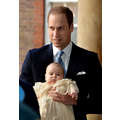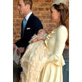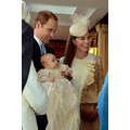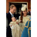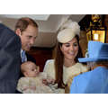 Proud parents Prince William and Kate Middleton take Prince George to his christening in London.