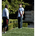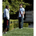 Prince Jackson chats with neighbor Keyshawn Johnson in Calabasas