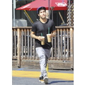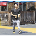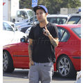 Pete Wentz grabs two coffees at Starbucks.